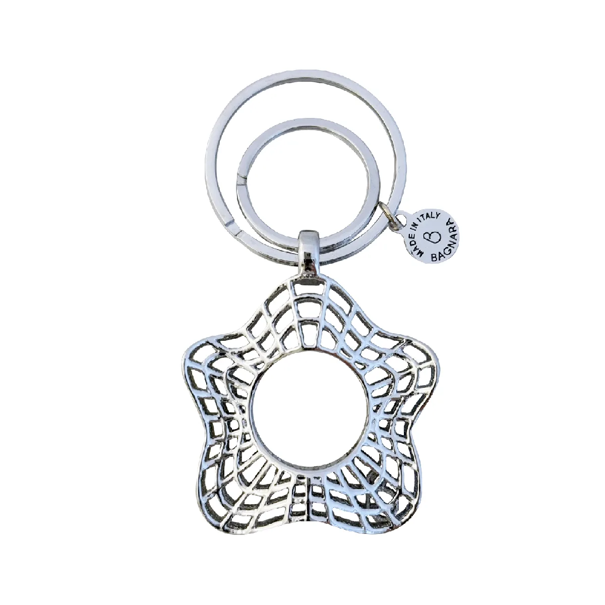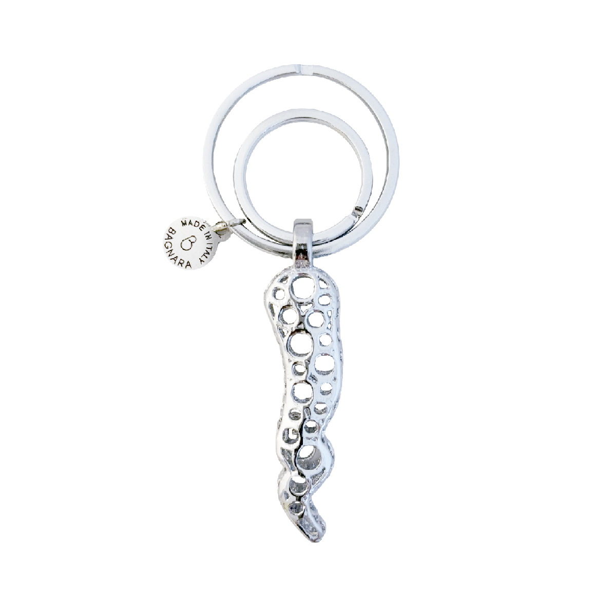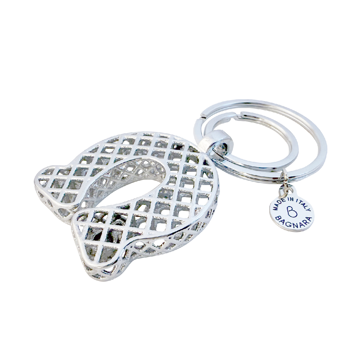 Completato da un anello portachiavi con medaglietta è disponibile in diverse forme.