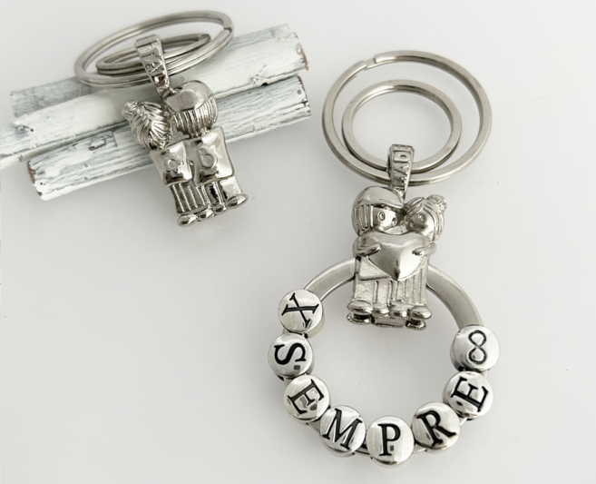 A unique keychain that depicts in detail two lovers who squeeze together in their promise of love.