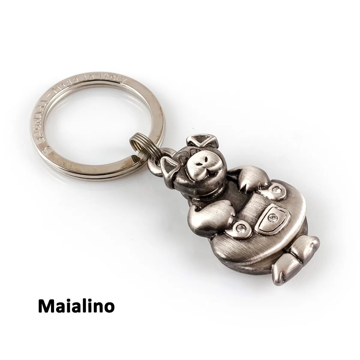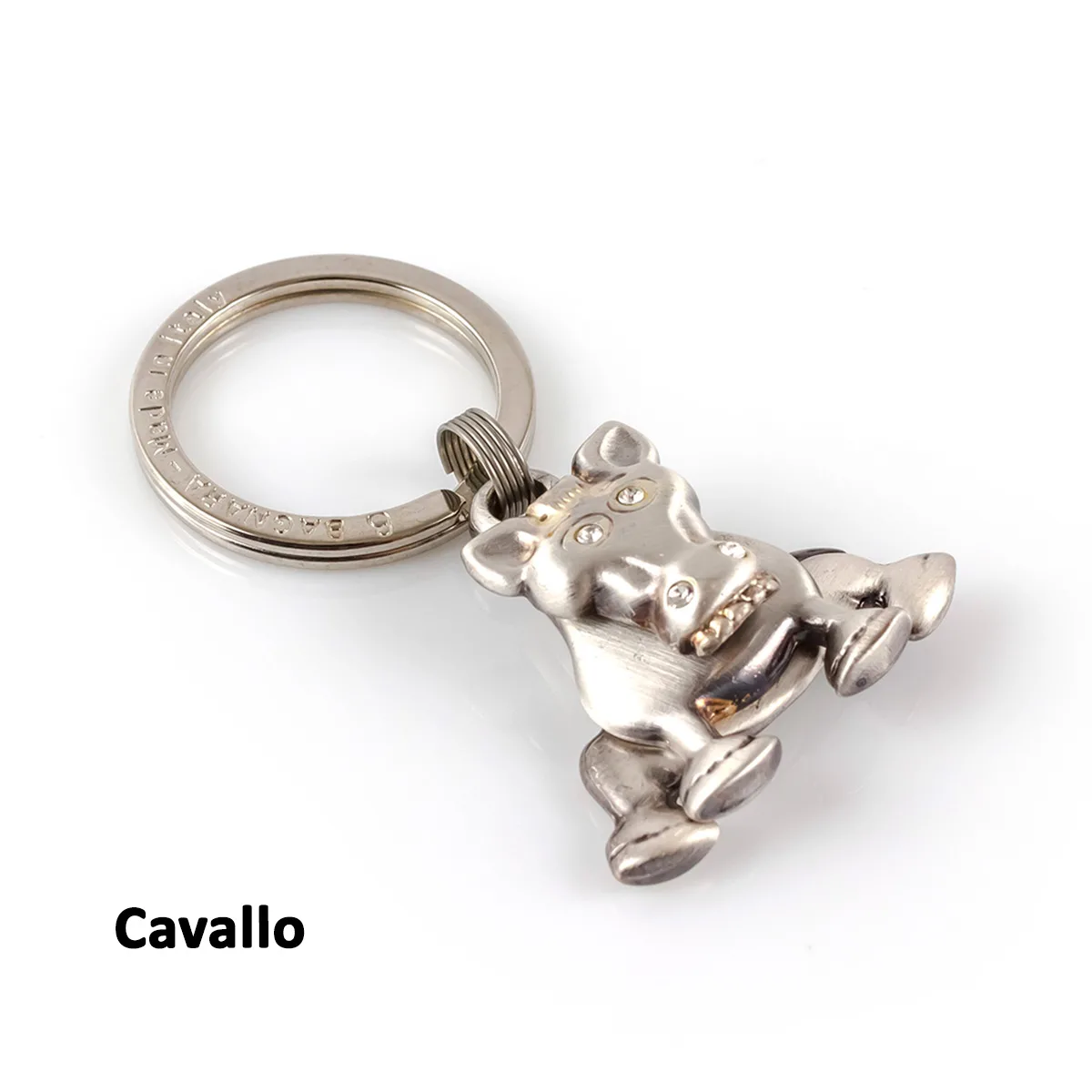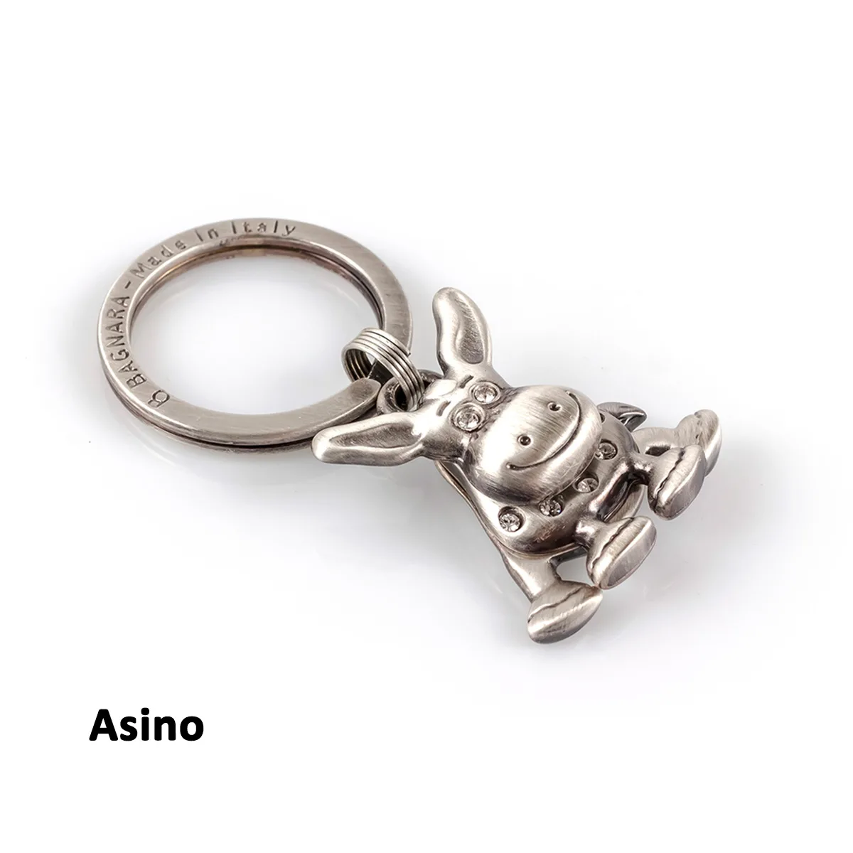 Questa collezione di portachiavi in metallo con inserti Swarovski celebra gli animali più vicini al nostro quotidiano, quelli che da sempre accompagnano la vita dell’uomo e che suscitano simpatia e affetto. Pecorelle buffe, maialini sorridenti, mucche vivaci, cavalli eleganti, asinelli teneri, conigli giocosi, cani fedeli e gatti curiosi: ogni portachiavi è una piccola scultura in miniatura che unisce artigianato italiano e dettagli brillanti. Ideali come regalo o come accessorio personale, questi soggetti familiari trasmettono un senso di calore, di affetto e di leggerezza, trasformando un oggetto di uso quotidiano in un simbolo di compagnia e buonumore.
