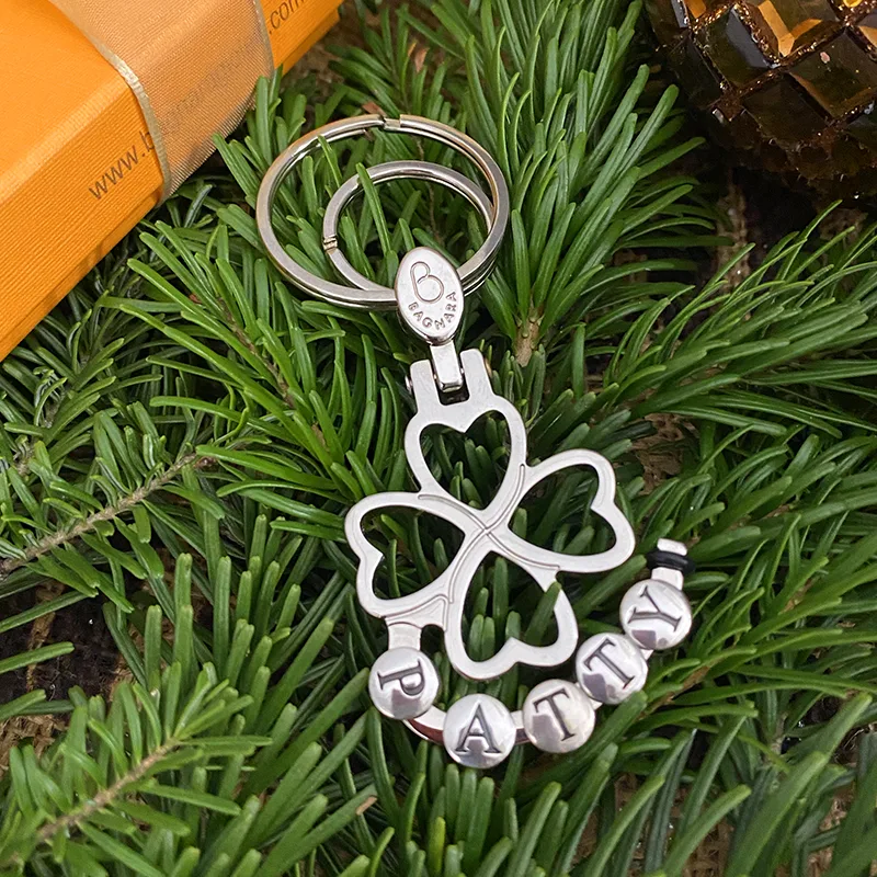 Abbiamo il rimedio: un portachiavi a forma di quadrifoglio che non solo porta con sé tutti i valori insiti nella fortuna ma ha un plus in più: è personalizzabile.