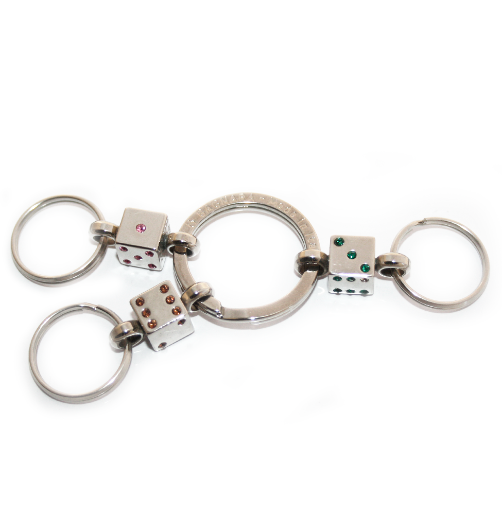 Il portachiavi Casinò è un accessorio elegante e divertente, pensato per chi ama distinguersi con dettagli originali. Realizzato in metallo resistente, si compone di piccoli dadi tridimensionali che richiamano il fascino del mondo del gioco e della fortuna.