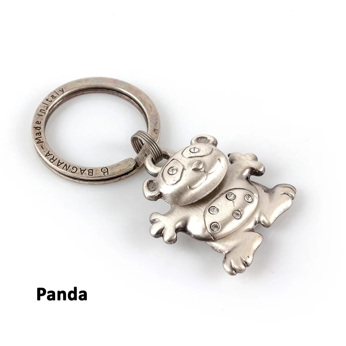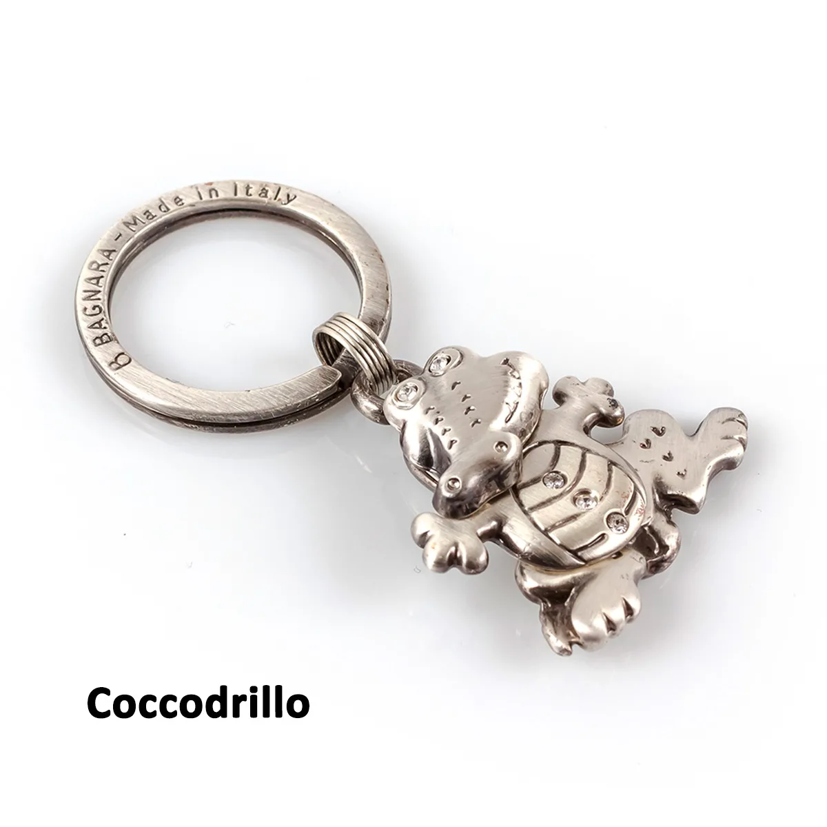 In questa collezione troviamo gli animali che evocano forza, mistero e fascino, provenienti da mondi lontani o da paesaggi naturali selvaggi. Dal maestoso elefante alla fiera del leone, dalla giraffa elegante al gorilla possente, fino al simpatico panda, al coccodrillo, alla rana e all’avvoltoio: ogni figura è resa con linee morbide e dettagli stilizzati che ne esaltano la personalità. Gli inserti Swarovski donano un tocco luminoso che contrasta con l’effetto satinato del metallo, rendendo questi portachiavi non solo pratici ma anche piccoli oggetti da collezione. Sono perfetti per chi ama la natura, i viaggi e le atmosfere esotiche, e vogliono portare sempre con sé un richiamo all’avventura.